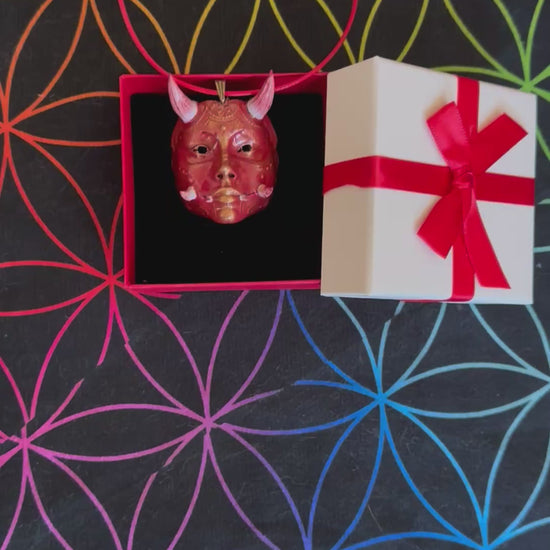 Le pendentif ONI capture l’essence mystérieuse et puissante des créatures mythiques du folklore japonais. Représenté en rouge, avec ses cornes blanches teintées de rouge à leur pointe, cet Oni symbolise à la fois la force brute et la dualité spirituelle. Dans la culture japonaise L’ONI n’est pas seulement une figure de terreur, mais aussi un gardien des secrets cachés, une entité qui incarne la puissance de l’ombre et la transformation intérieure.